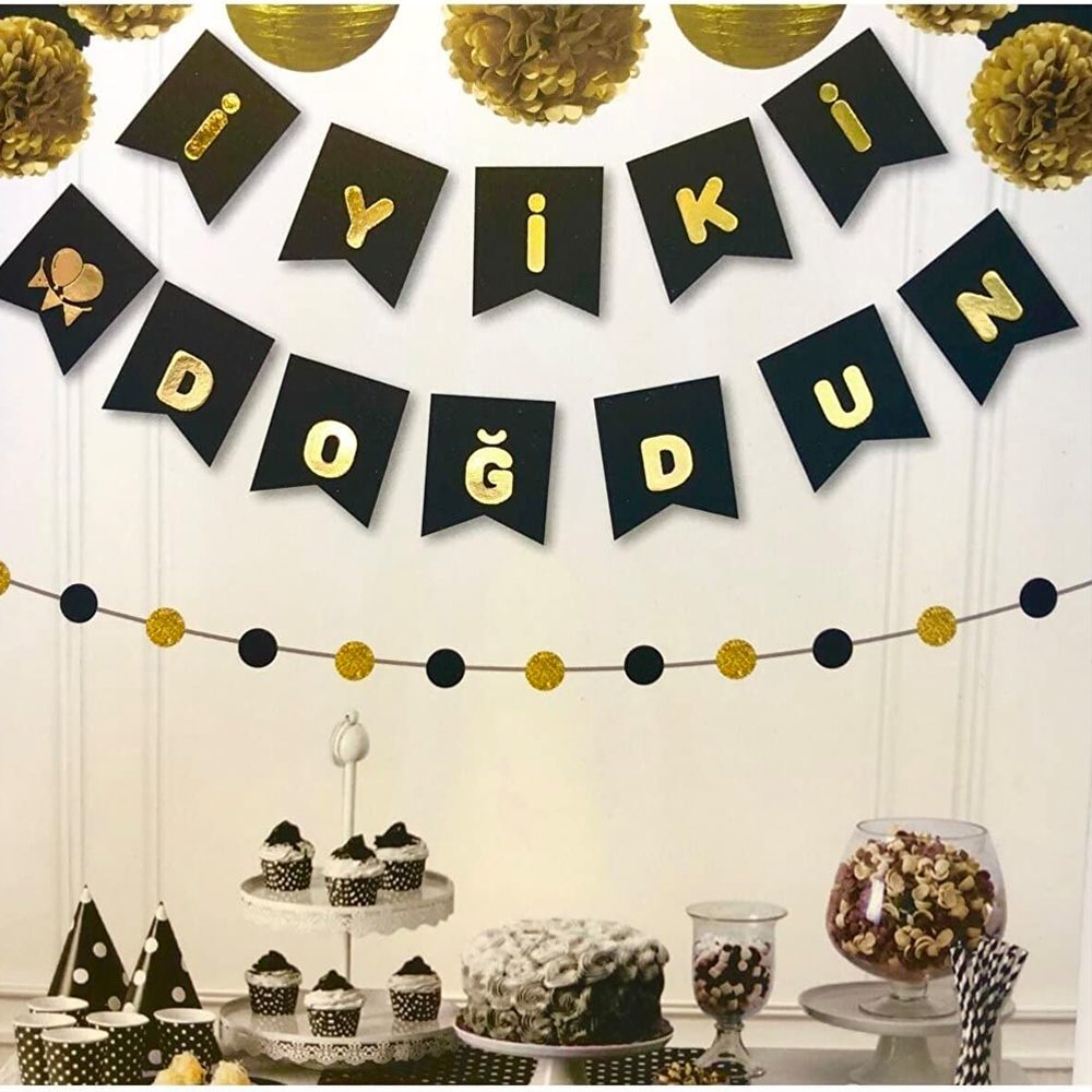 Doğum günü organizasyonlarınıza şıklık ve kalite katmak istiyorsanız, Siyah Gold İyi Ki Doğdun Flama Banner tam size göre!